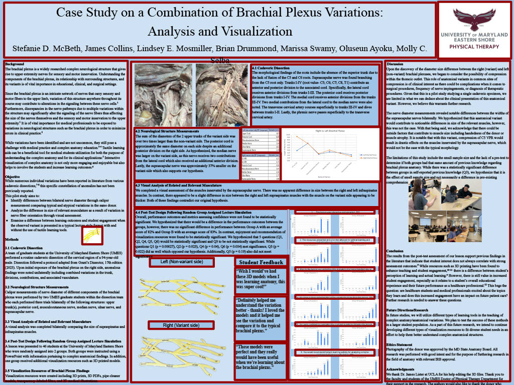 Additionally, we presented this poster at an annual American Anatomy Association Conference - Anatomy Connected 2024 - in Toronto Canada, ultimately being the first, 1st Year DPT students to present research at a national (international in this case) conference at the University of Maryland Eastern Shore!