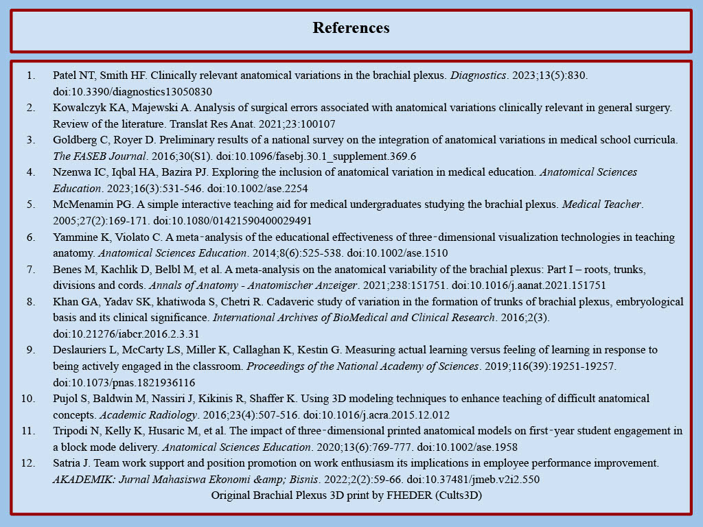We performed a routine cadaveric dissection of the cervical region of a 94-year-old male. Anomalous findings were noted on the right side, including combined variations in the trunks, divisions, and contributions. Three trials of bilateral caliper measurements of the nerves were recorded. Additionally, a bilateral visual analysis of relevant musculature was performed. To investigate how we can best teach complex morphology like what was observed in our donor, we did a follow-up study presenting a lesson on these structures to 46 students at the University of Maryland Eastern Shore who were randomly assigned into 2 groups: one group received didactic instruction on the observed variant while the other received additional 3D-printed learning materials. Performance outcomes and metrics assessing confidence were not found to be statistically significant, however, enjoyment and recommendation of visualization resources were found to be statistically significant. The results of this study encourage future research surrounding the role of enjoyment/engagement in anatomy education.